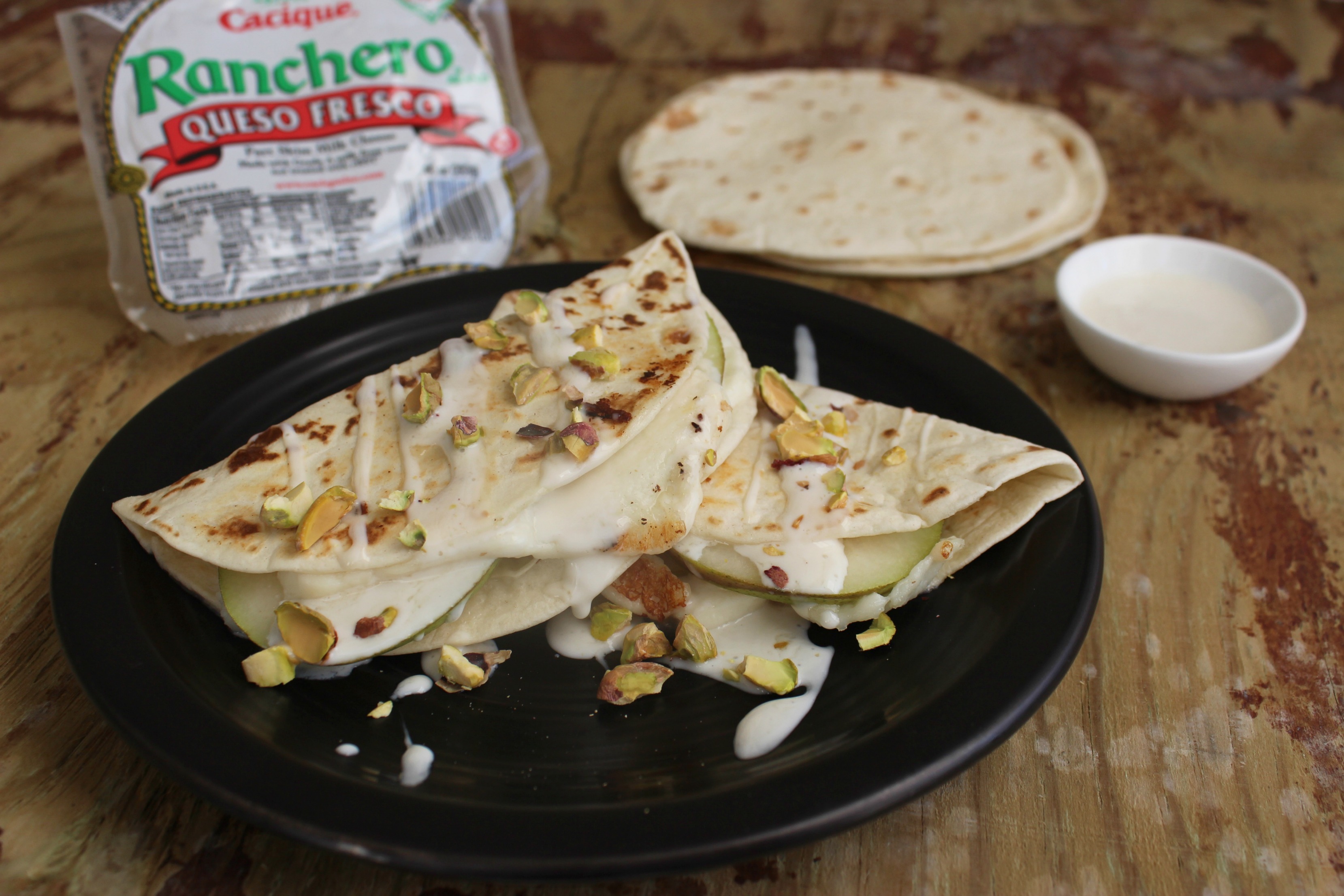 Quesadillas de Pera y Pistacho con Crema Dulce: